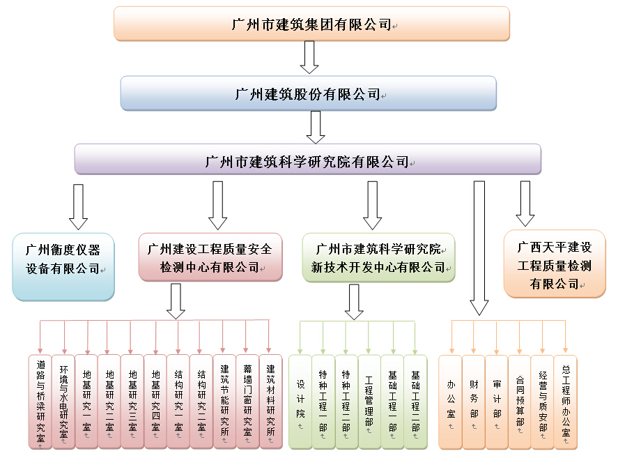 广州建设工程质量安全检测中心有限公司隶属的广州市建筑科学研究院有限公司,原名为广州市建筑科学研究院,成立于1964年4月。2008年9月由事业单位改制为有限公司,国有持股100%。具有工程检测、检查鉴定、工程咨询、建筑工程设计、市政工程设计、城市规划、工程勘察、专业施工等业务资质,实验室通过计量认证的检测项目30个大类。