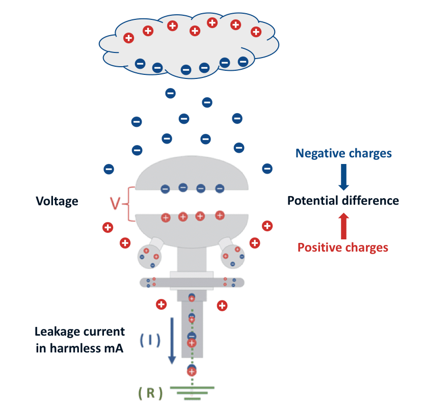 通过吸收和排放接地系统的多余电荷,CMCE 避免了对立静电荷的过度集中,从而防止了流光发射并消除了受保护区域中的雷电形成。