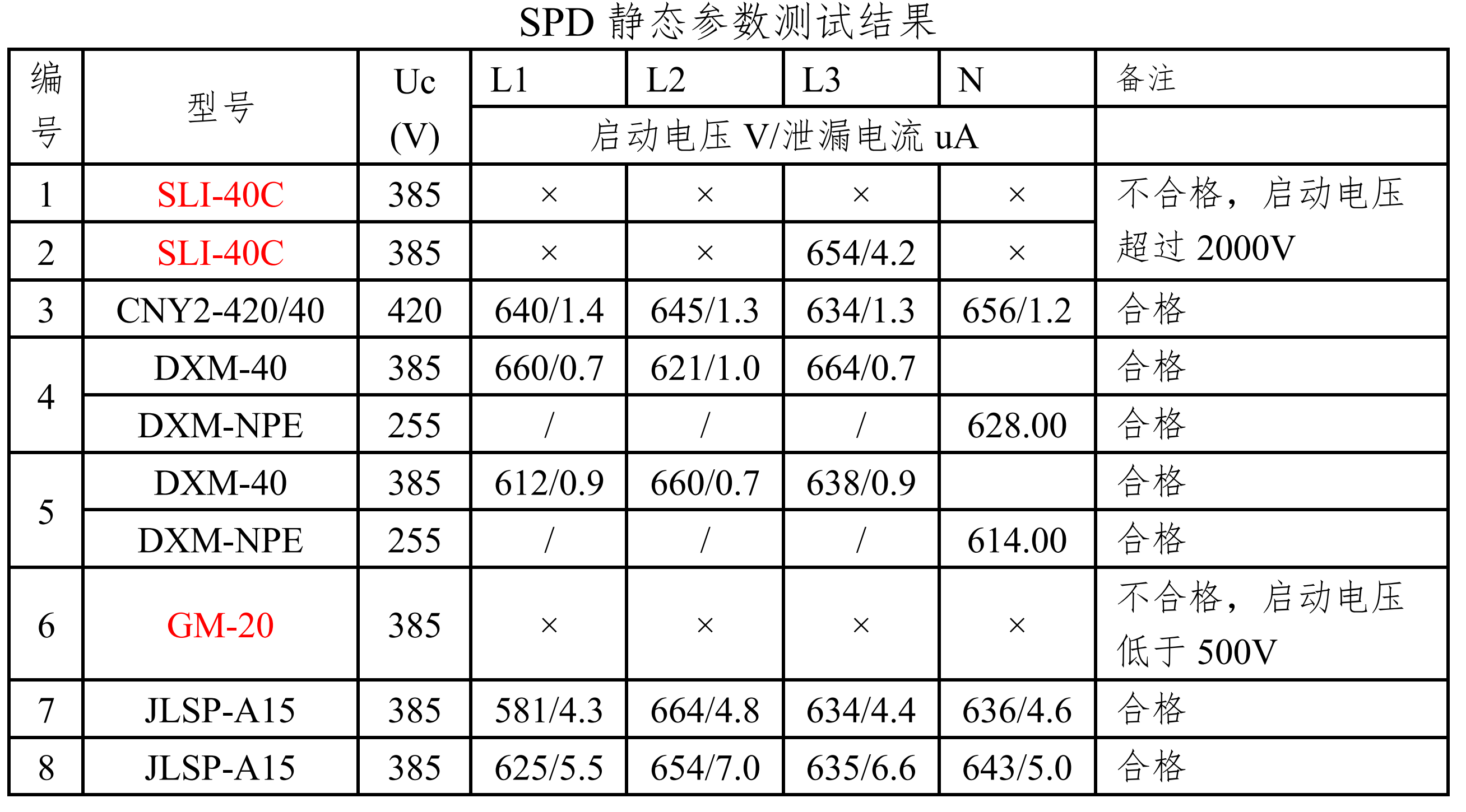 通过使用防雷元件测试仪,可以测试出压敏电压和漏电电流。压敏电压与SPD的Uc值对应,可以判定参数是否虚标或者在规范允许的范围内。漏电流可以判定SPD老化程度,预防起火风险。