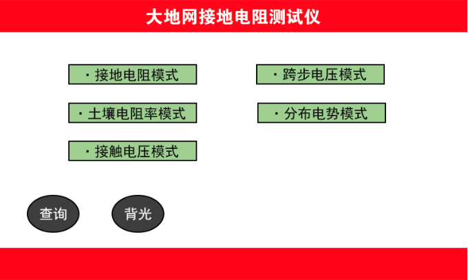 接地电阻测量、土壤电阻率测量,跨步电压测量,分布电势测量,接触电压测量。触摸彩屏,带打印机。