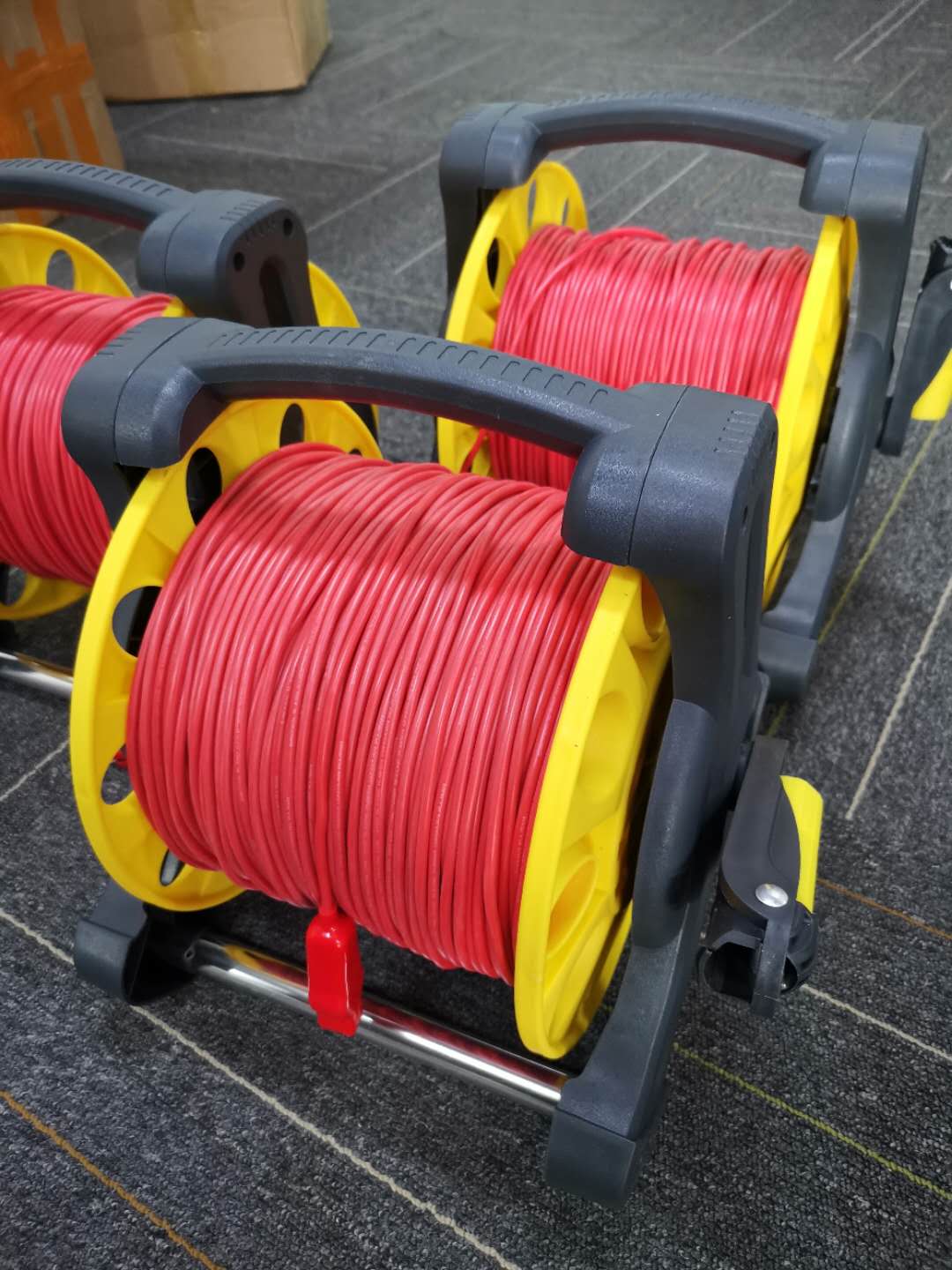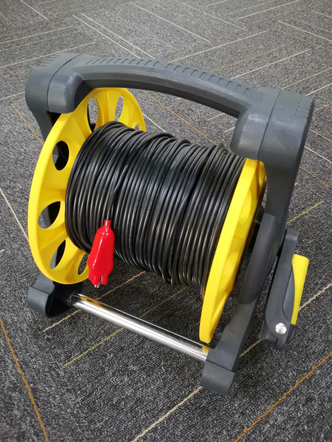 本测试线采用14AWG 多股软硅胶线,内芯采用铜镀锡多股线,具有耐腐蚀,柔软,耐磨,耐冻防裂,防酸碱的优点,配合符合人工体学的收线架,广泛应用于防雷检测中。