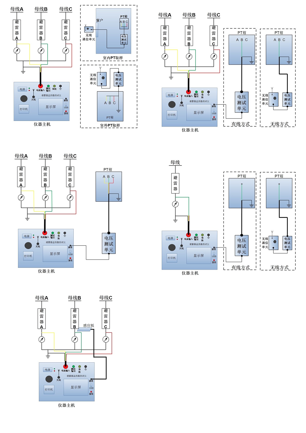 对于避雷计数器架设较高,安全距离不够或根本没有装设计数器的避雷器,避雷器接地排和杆塔接地极之间是采用螺栓连接的,也可以直接将测试装置串接入避雷器接地排和接地极之间。