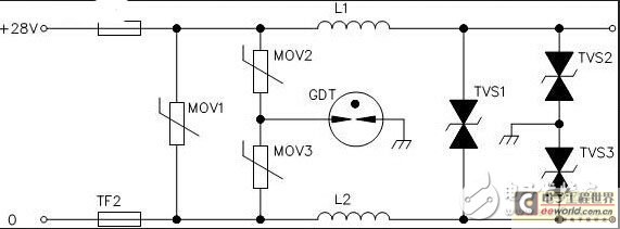 采用常规的两级设计方式,第一级用来吸收较大的浪涌,后级采用TVS来对残压进一步的吸收。第一与第二级之间采用电感进行退耦,起到延时的作用,这样可以保证MOV可以比TVS先动作。u 前级共模采用压敏与气采用常规的两级设计方式,第一级用来吸收较大的浪涌,后级采用TVS来对残压进一步的吸收。第一与第二级之间采用电感进行退耦,起到延时的作用,这样可以保证MOV可以比TVS先动作。u 前级共模采用压敏与气采用常规的两级设计方式,第一级用来吸收较大的浪涌,后级采用TVS来对残压进一步的吸收。第一与第二级之间采用电感进行退耦,起到延时的作用,这样可以保证MOV可以比TVS先动作。u 前级共模采用压敏与气