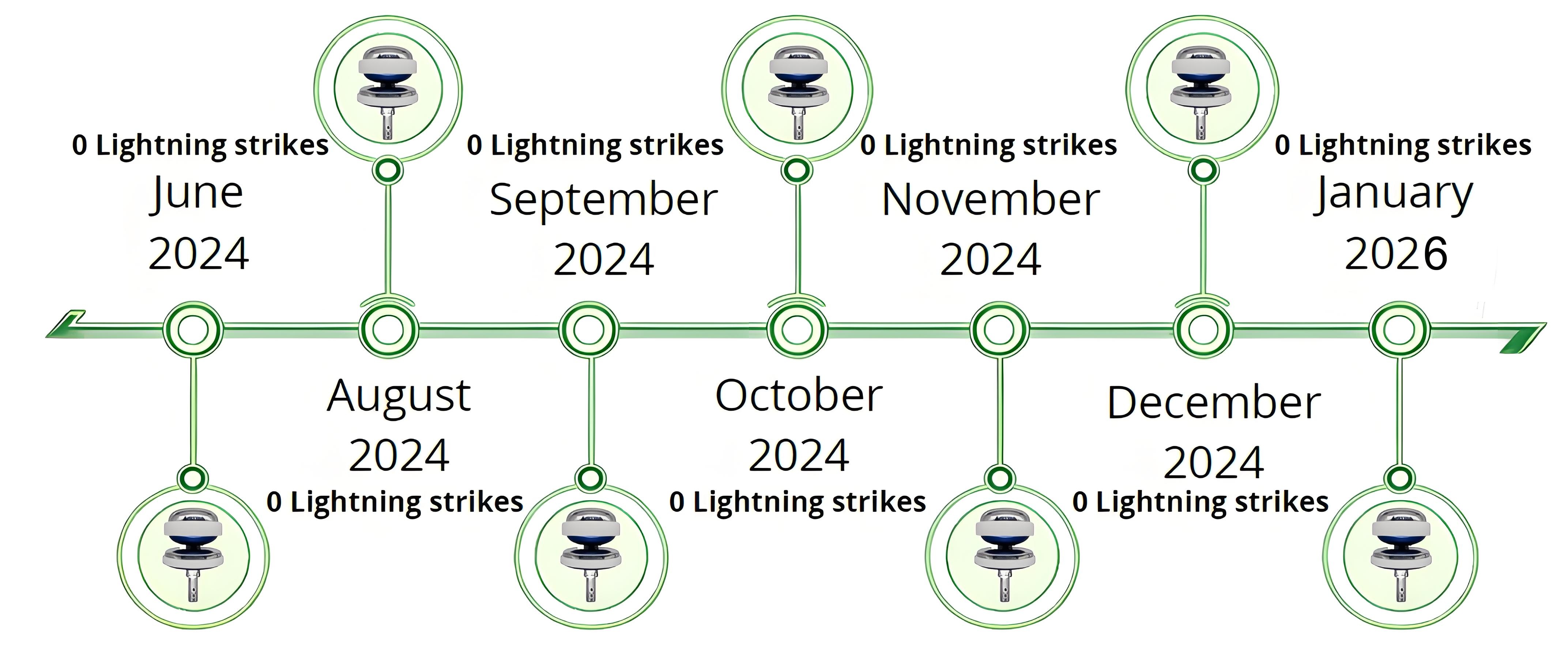 经过超过 18 个月的连续运行,安装了 CMCE Twin Max 系统的风电场未再记录任何因雷击或放电系统异常引发的新事件。电气事件数量的减少证实了该系统在电磁场控制及减缓叶片表面电离现象方面的有效性。此外,该解决方案有助于延长现有防护系统的使用寿命,并减少因大气放电所导致的纠正性维护工作。